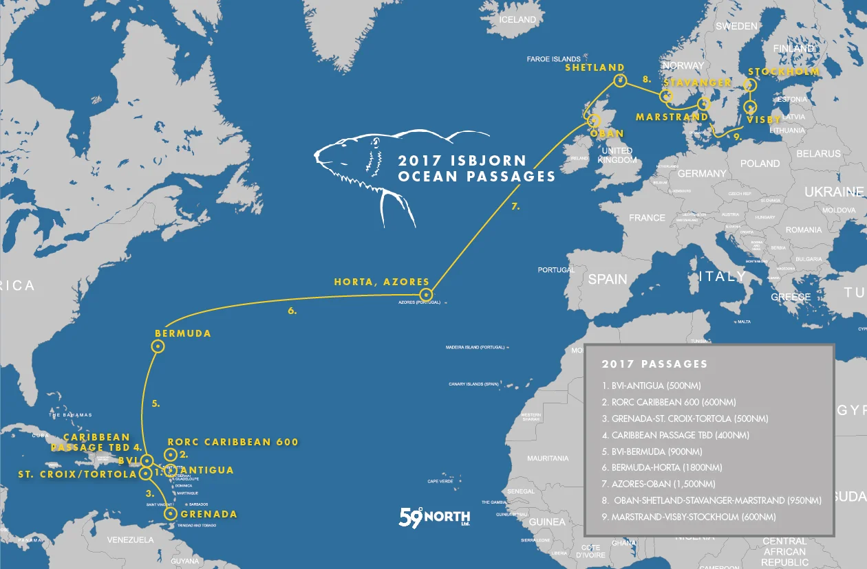 In 2017, Isbjorn will be in the Caribbean again, where our first trip of 2017 will see us compete in the 2017 RORC Caribbean 600, aiming to win our class! After cruising south to Grenada and then completing a Grenada-Virgin Islands Passage, we'll finally cross the Atlantic, via Bermuda & the Azores. From Horta, we'll sail north to Scotland, Shetland & Norway. We'll then make landfall on the west coast of Sweden and finish the year making our way into the Baltic and Stockholm. Isbjorn will spend the winter in Stockholm. See details and register below!