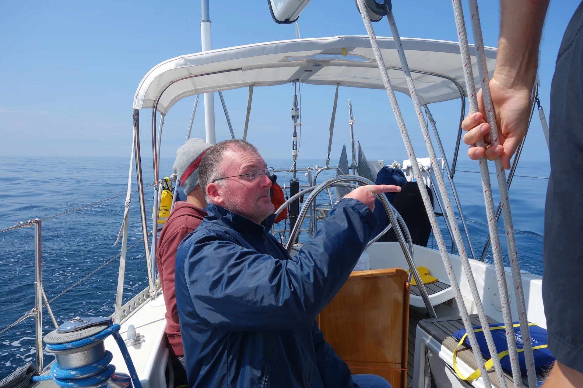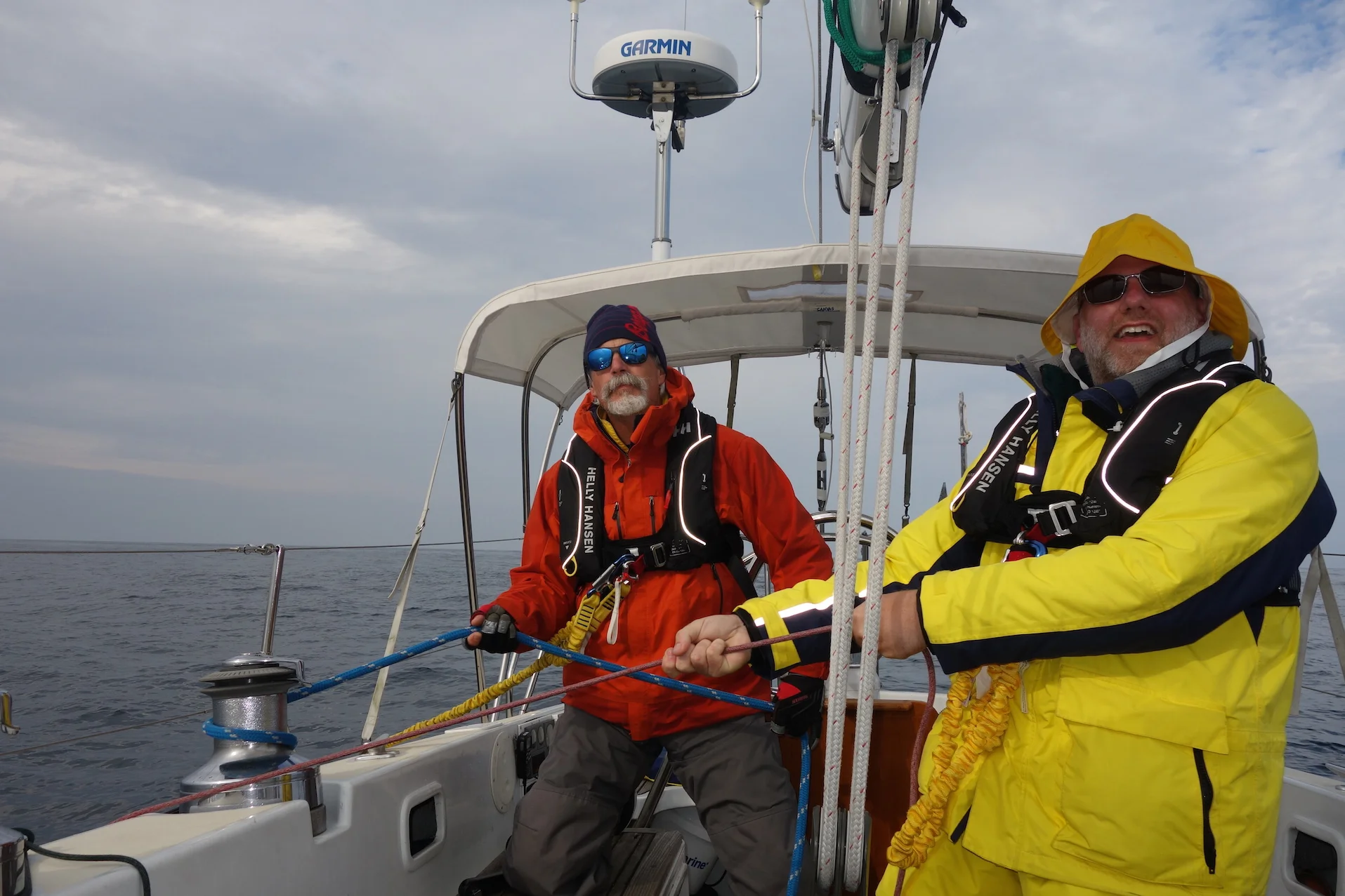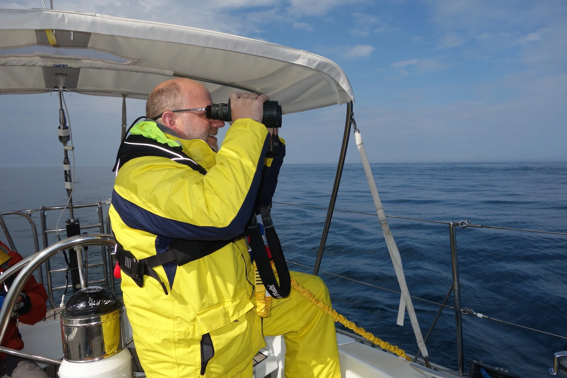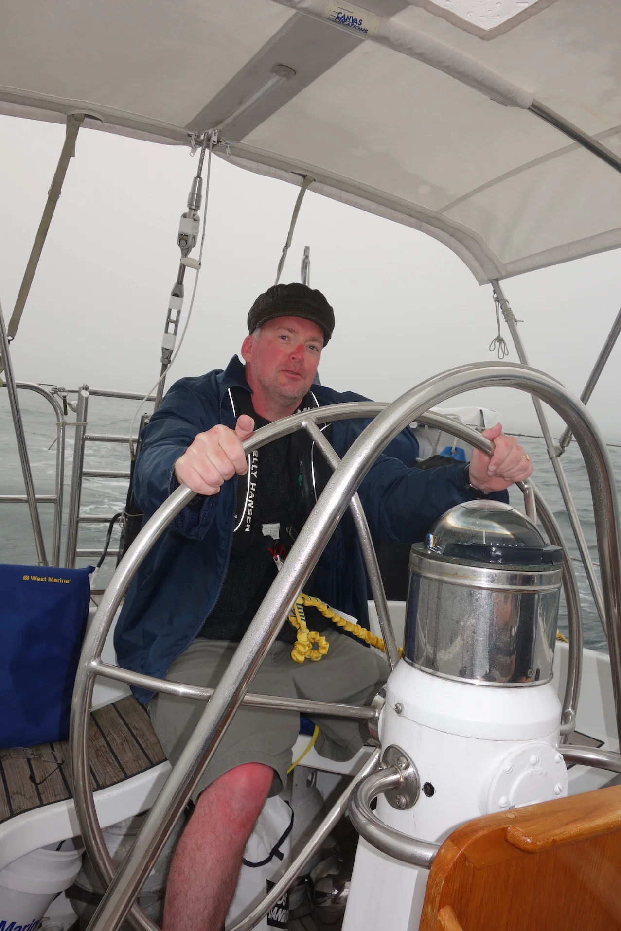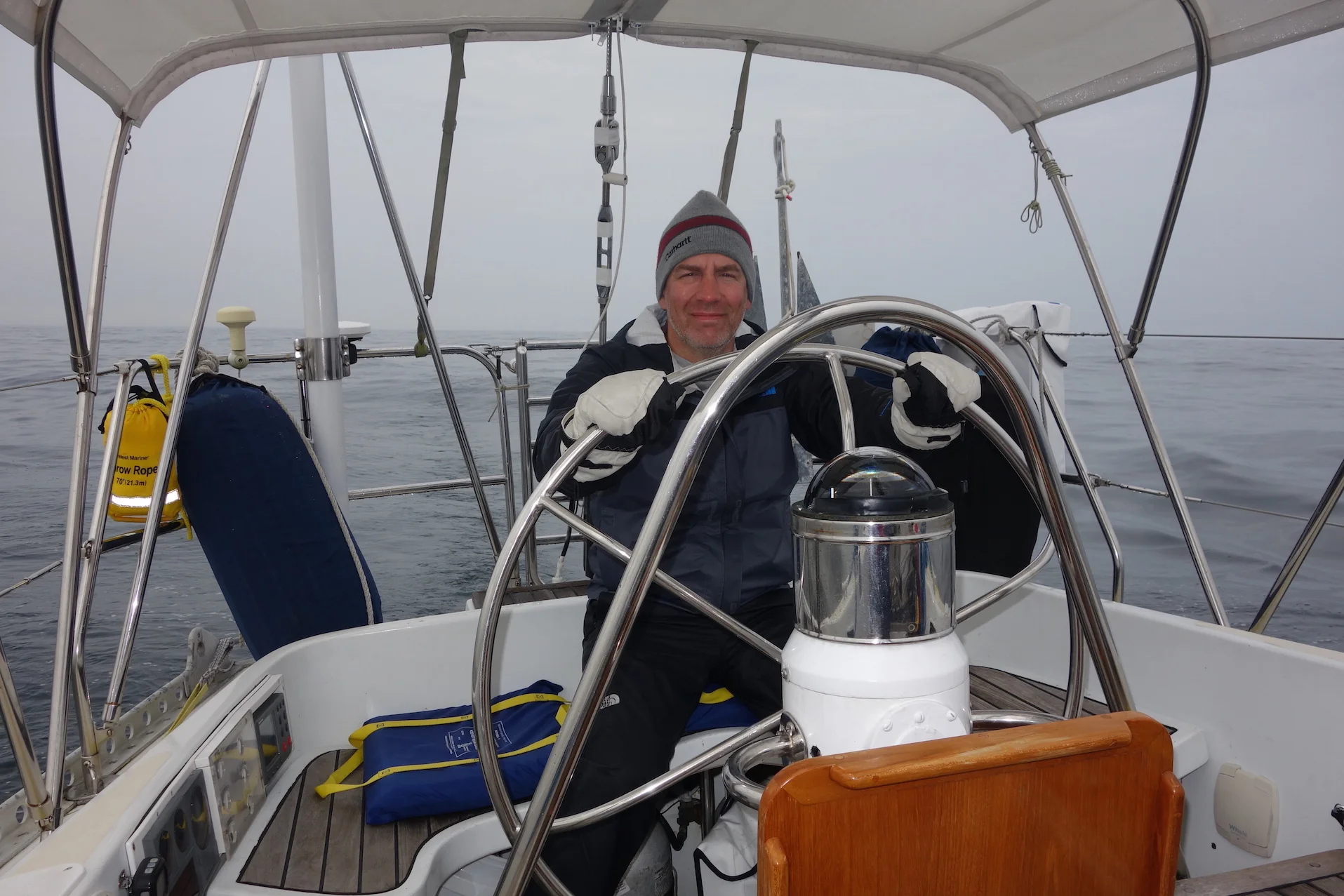 I went to sleep under grey skies and a gentle drizzle when Dan & Charly came on watch, but when I woke a few hours later the sun was out, the wind was gone and it was downright warm. Almost warm enough to take off my fleece.