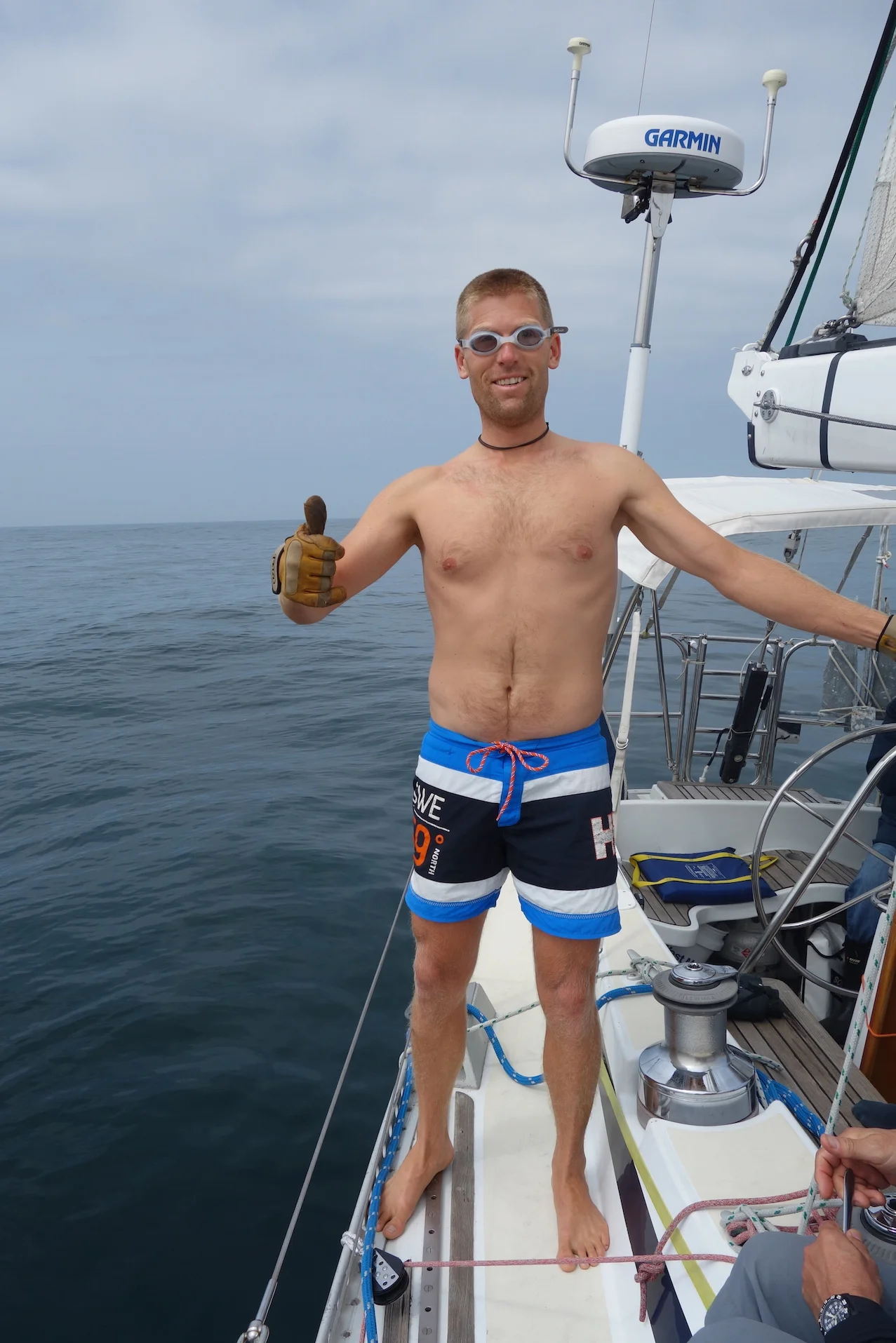 Anyway. Bolstered perhaps by the lingering energy from that dream, and after yesterday's embarrassment of NOT actually diving on the prop, I took the chance under sunny skies today. The water was just as cold. The crew was on the lookout for seals and basking sharks when I dove in. We'd seem over a dozen of both, just today alone. The sun added a welcome brightness to the ocean and I managed successfully this time to scrape the prop clean. It took three or four dives. I should have done another to clean the hub, but I came up from the last dizzy from the cold water rushing into my ears and called it a day. We're motoring a full knot faster now, and yes thanks, I'll take the credit!
