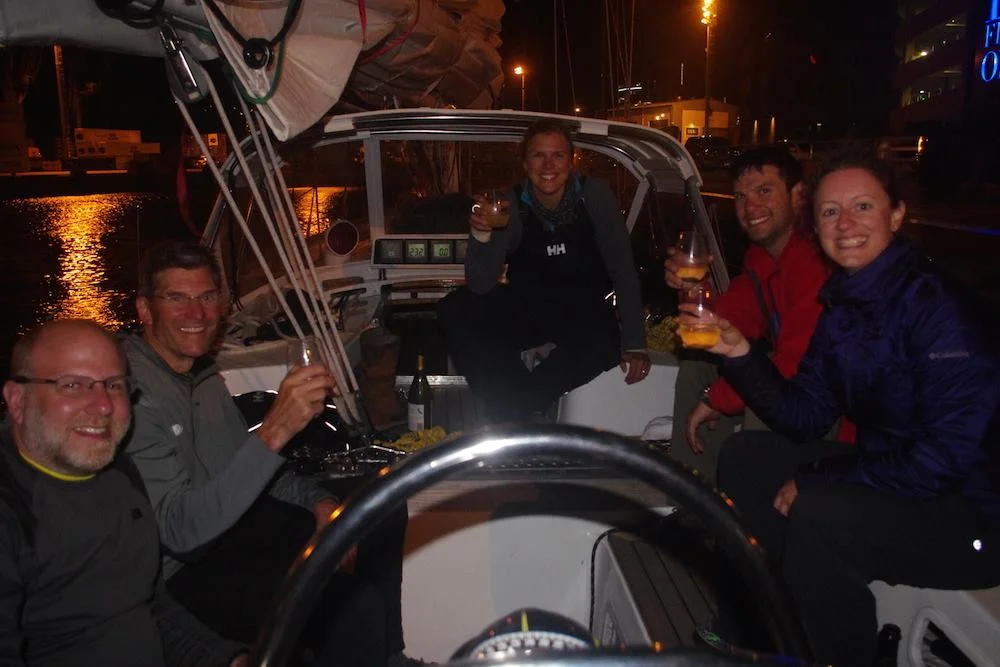 We dropped the sails only once into the ‘Narrows’, and in the flat water of the harbor, now lit up before us, and followed the range lights into the wharf downtown.